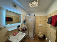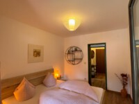 Schlafzimmer mit Doppelbett. Bad mit Duschkabine, Waschbecken und WC, Fön. Zentralheizung, WLAN.