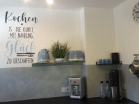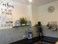 Die offene Küche ist gut ausgestattet mit einem 4-Plattenherd, Backofen, Kaffeemaschine, Wasserkocher, Toaster, Eierkocher und Sodastream sowie einem Kühlschrank. Im Bad mit Duschkabine, Waschbecken und WC finden Sie auch einen Fön.  Zentralheizung sorgt für angenehme Temperaturen.