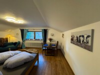 Auch wenn unsere kleine Ferienwohnung keinen Balkon hat, können Sie gerne unser kleines Gärtchen nutzen, wenn Sie möchten.  WLAN ist natürlich vorhanden, und für Ihr Auto gibt es einen Parkplatz direkt am Haus.  Fahrrad- und Ski-Abstellraum sind ebenfalls vorhanden.  Haustiere sind auf Anfrage willkommen.
